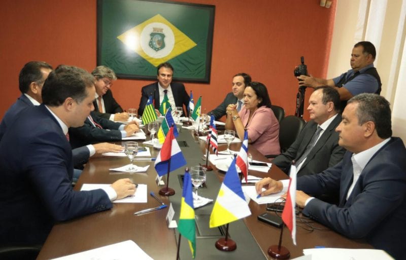 Hoje à tarde, os governadores Camilo Santana (Ceará), Paulo Câmara (Pernambuco), Wellington Dias (Piauí), João Azevedo (Paraíba – eleito)), Fátima Bezerra (Rio Grande do Norte – eleita), Renan Filho (Alagoas), Rui Costa (Bahia), Waldez Goes (Amapá) e o vice-governador do Maranhão, Carlos Brandão, terão uma reunião com o presidente do Senado, Eunício Oliveira, e com o presidente da Câmara, Rodrigo Maia. Serão debatidos o bônus de assinatura das novas reservas de exploração do pré-sal – (PLC/78 – Cessão Onerosa) e a securitização das Dívidas (PLP 459).