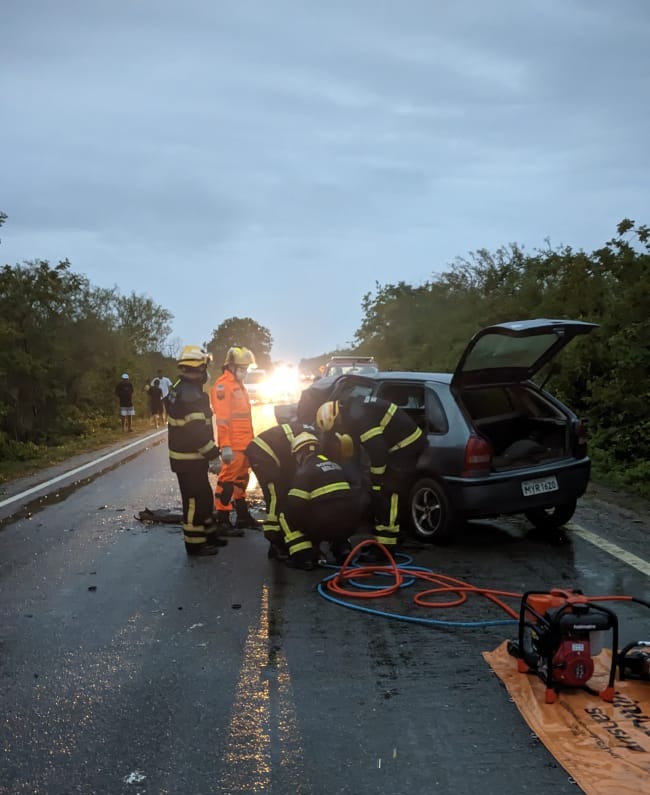 • Bombeiros do RN resgatam motorista preso às ferragens após colisão entre dois carros em Extremoz