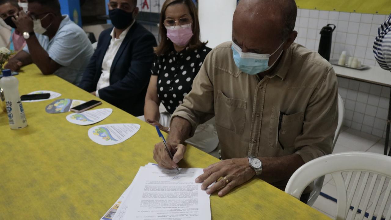 A solenidade de assinatura foi realizada na Escola Municipal Manoel Machado, localizada no Conjunto Jardim Aeroporto, em Emaús e contou com a presença dos moradores contemplados, além do presidente da Câmara Municipal, Wolney França e demais vereadores.