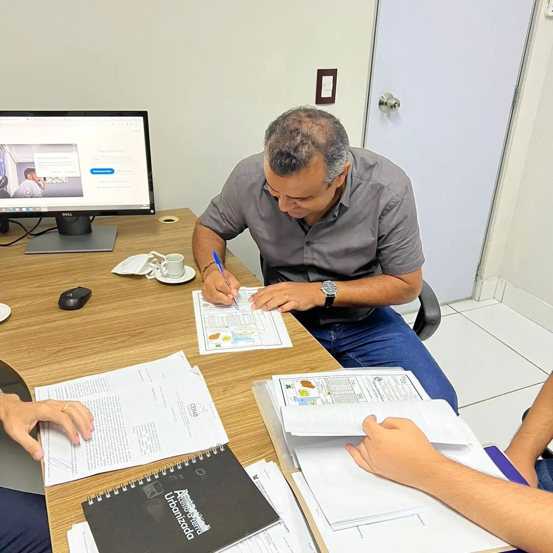 Tendo um total de 183 unidades habitacionais que irão receber a documentação de regularização, o prefeito de São Tomé, Babá Pereira, esteve nesta segunda-feira (20) na Companhia Estadual de Habitação e Desenvolvimento Urbano (CEHAB), para assinar a documentação de regularização fundiária, junto ao Diretor Presidente, Pablo Thiago.