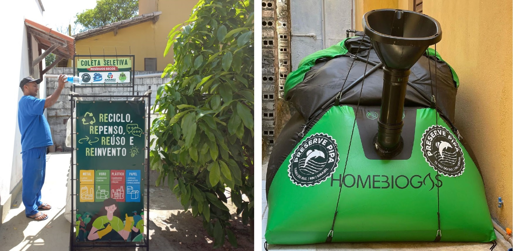 O Kilombo Villas apoia o artesanato local e o Mirante da Pipa possui piso permeável feito com garrafas de vidro reaproveitadas.