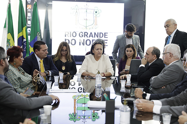 A governadora Fátima Bezerra reuniu nesta quinta-feira (16) as autoridades dos poderes Legislativo e Judiciário, Ministério Público estadual e federal e de instituições representativas da sociedade para tratar das ações de contenção da onda de violência que vem ocorrendo no Estado e instalação do Gabinete de Gestão de Crise (GGC). O GGC será composto pelos presidentes dos poderes e dirigentes dos órgãos e instituições.