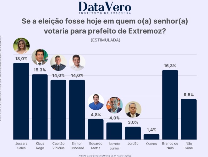 A pesquisa Datavero realizada de 13 a 16 de abril com 400 eleitores em Extremoz avaliou o cenário estimulado para eleições de 2024.