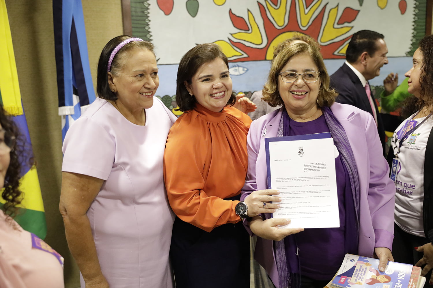 Também participaram, Olga Aguiar e Vanessa Fialho (Semjidh), Cicília Maia (UERN), Ana Claudia Saraiva (PCRN), Lyane Ramalho (SESAP), Natécia Nunes (DER), Armelli Brennand, secretária adjunta da SEAP e Marcia Maia (AGN) e Larissa Dantas, diretora-presidente da Companhia Potiguar de Gás (Potigás) e Joana D’arc Lopes, representante do Conselho Estadual dos Direitos das Mulheres e Marília Rocha, diretora de comunicação institucional da Assembleia Legislativa.