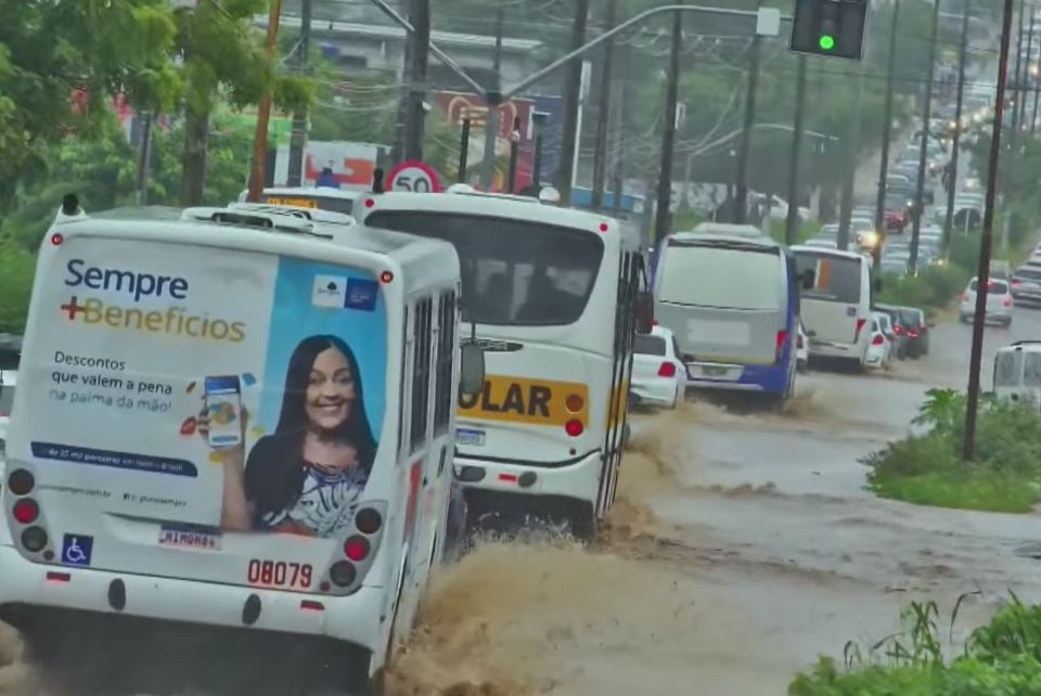 Em Natal, os motoristas enfrentam dificuldade por causa de um alagamento no cruzamento das avenidas Doutor João Medeiros Filho com Moema Tinoco, no bairro Pajuçara, na zona Norte de Natal.
