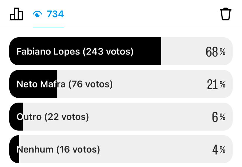 ENQUETE: Fabiano Lopes é o mais votado com 68% ao ser perguntado sobre 2024, em seguida Neto Mafra com 21%