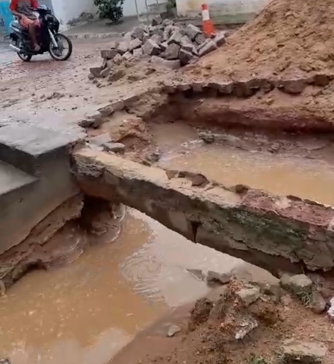 Calçamento afetado no bairro Santos Dumont. Foto: reprodução do vídeo/redes sociais