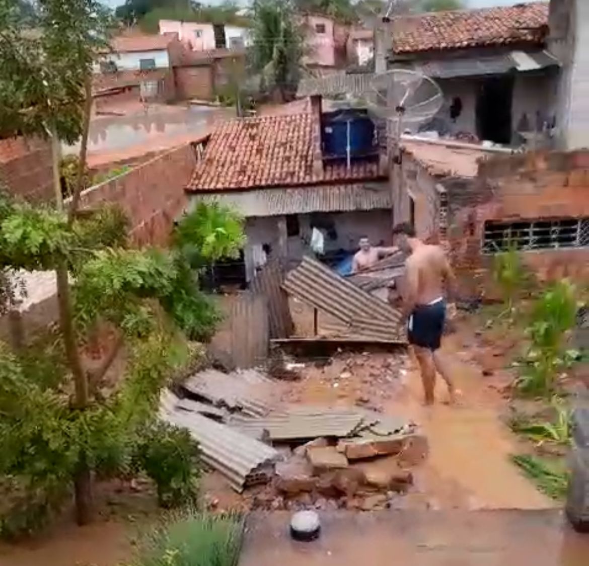 Muro da casa atingido pela chuva. Foto: reprodução do vídeo/redes sociais