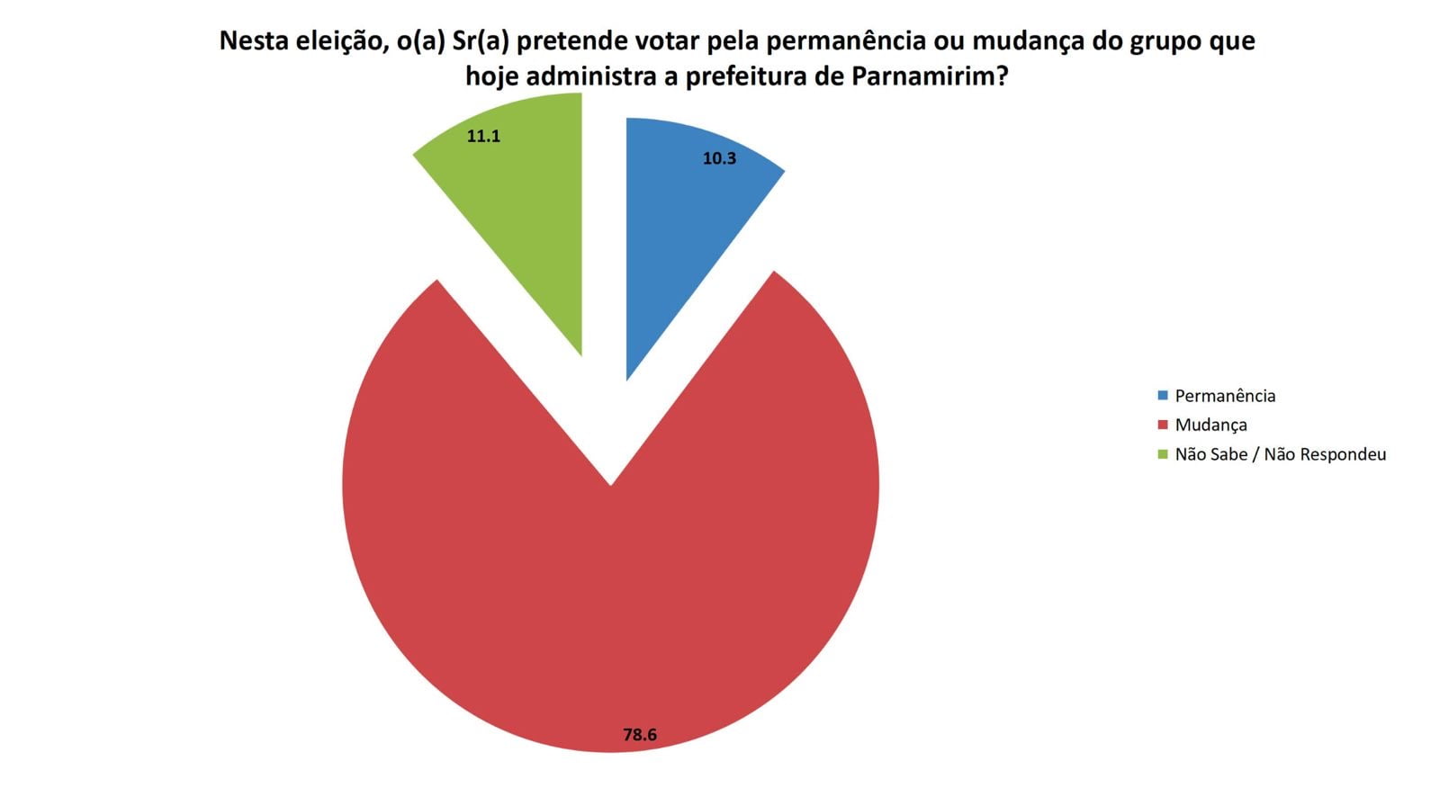 No tocante à avaliação da gestão municipal, a administração do prefeito Rosano Taveira é desaprovada por 63% dos eleitores parnamirinenses entrevistados pelo instituto Seta, 26% aprova e não sabe/não respondeu somou 11%. Esta desaprovação é refletida no sentimento de mudança do eleitorado de Parnamirim. Ao serem questionados “Nesta eleição, o (a) sr (sra) pretende votar pela permanência ou mudança do grupo que hoje administra a Prefeitura de Parnamirim?”, 78,6% respondeu que pretende votar pela mudança, 10,3% afirmou pela permanência e 11,1% não sabe/não respondeu.