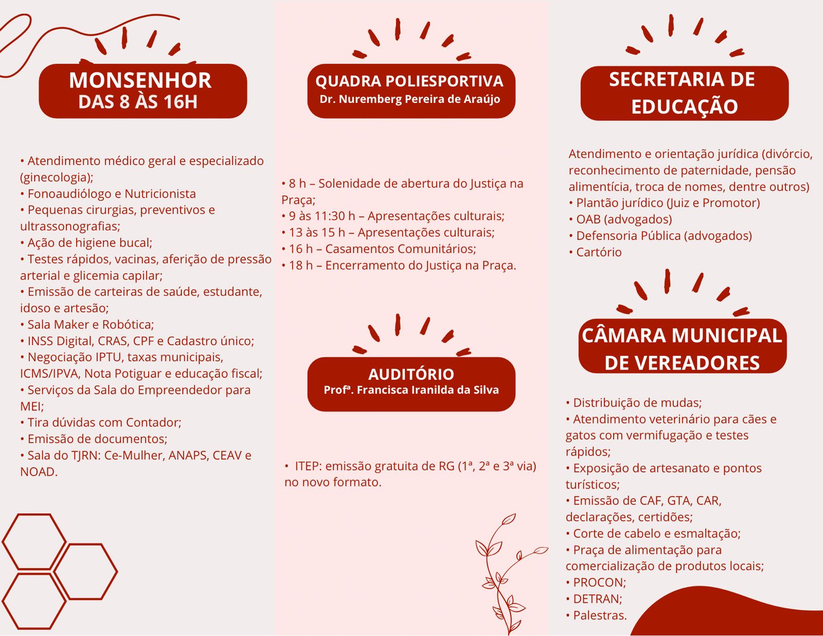 O Programa Justiça na Praça é um programa social do Tribunal de Justiça do Rio Grande do Norte, coordenado pelo Desembargador Francisco Saraiva Dantas Sobrinho e desenvolvido pelo Núcleo de Ações Socioambientais (NAPS) do Judiciário do Rio Grande do Norte, que tem como objetivo oferecer à coletividade o maior número de serviços da justiça estadual e de outras instituições parceiras federais, estaduais e municipais para a população.