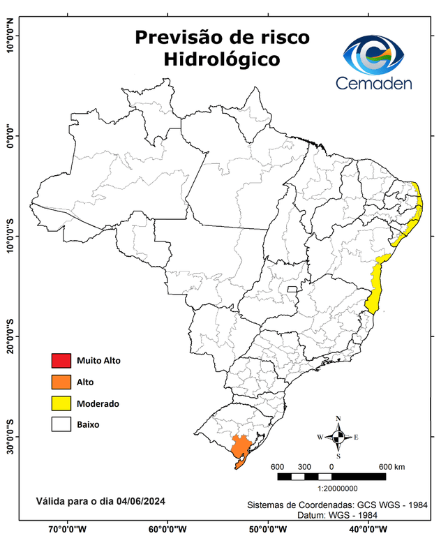 A Defesa Civil, por meio do por meio do Centro Nacional de Monitoramento e Alertas de Desastres Naturais (Cemaden/MCTI), emitiu um alerta de risco moderado para alagamentos em Natal e região Leste do Rio Grande do Norte. O aviso é válido para esta terça-feira (4).