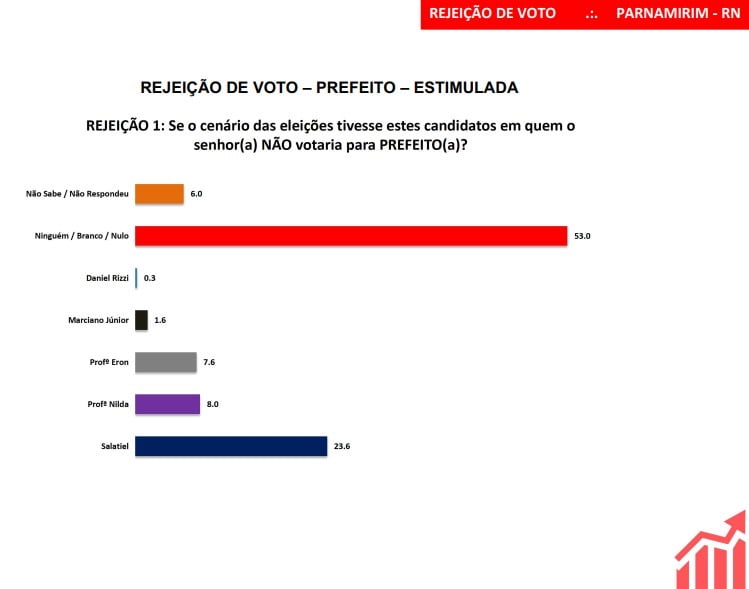 O candidato apoiado pelo Prefeito Taveira, em Parnamirim, tem a rejeição maior do que a soma de todos os outros candidatos juntos.