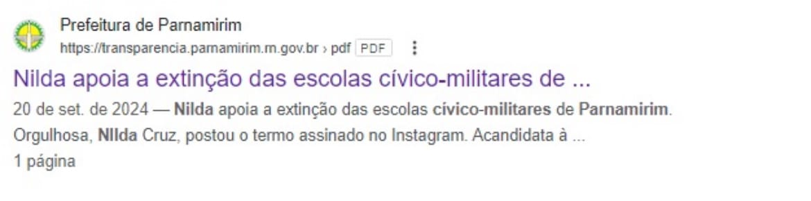 Para atacar Nilda de maneira ilegal, a página de uma edição do jornal impresso Tribuna do Norte foi publicada em um dos sites da Prefeitura de Parnamirim (Portal da Transparência) no dia 20 de setembro. Na página, aparece uma “reportagem” que distorce a posição de Nilda quanto às escolas cívico-militares.