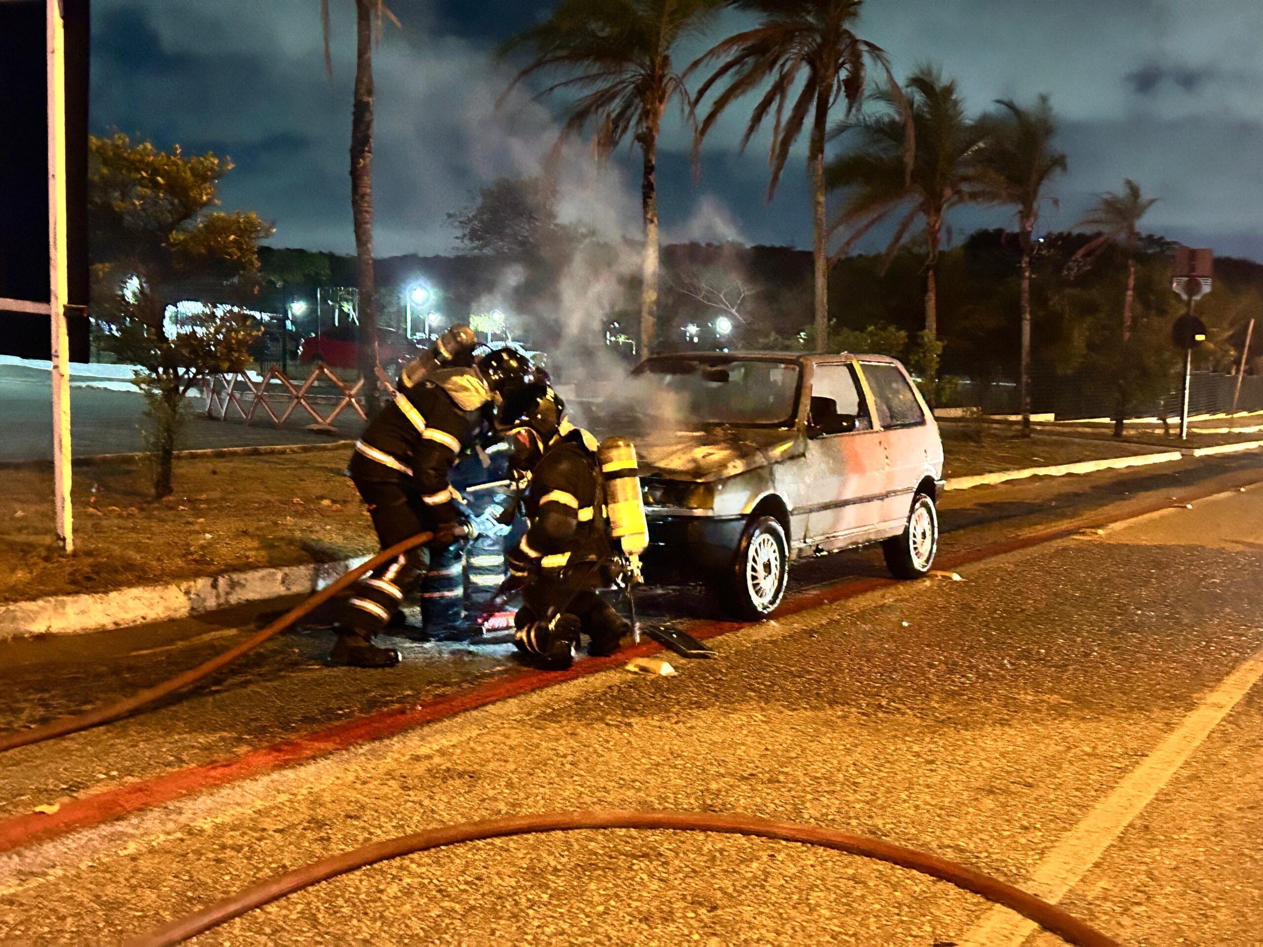 Na noite desta sexta-feira (18), o Corpo de Bombeiros Militar do Rio Grande do Norte (CBMRN) foi acionado para combater um incêndio em um veículo modelo Fiat Uno, que pegou fogo enquanto transitava pela avenida Prudente de Moraes, em Natal. A condutora, que estava com sua filha, conseguiu sair do carro sem ferimentos e acionou a equipe de emergência.