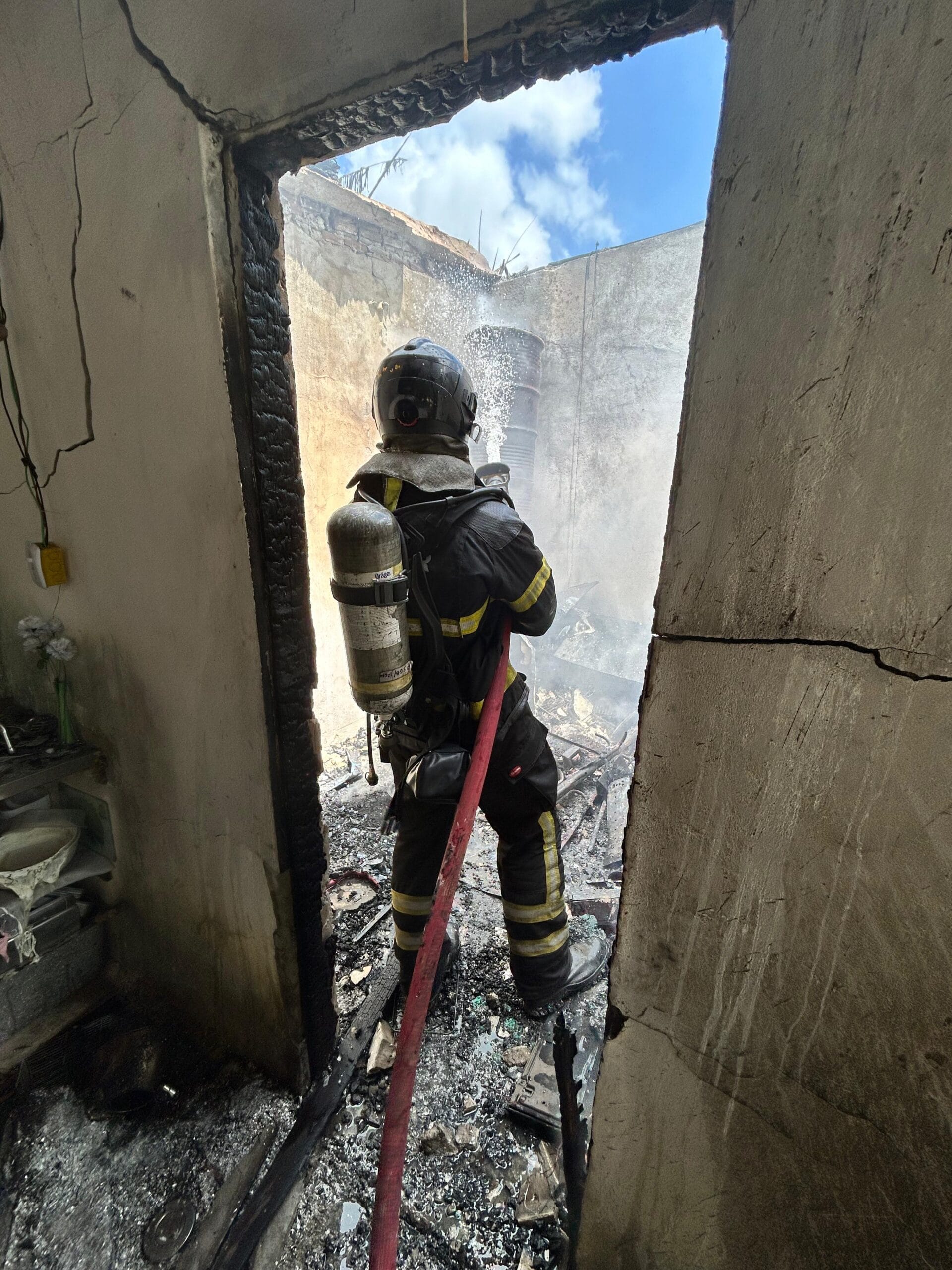 Na manhã de hoje, uma residência localizada na Rua Ladir Borges dos Santos, no bairro Passagem de Areia, em Parnamirim, foi atingida por um incêndio de grandes proporções. O Corpo de Bombeiros foi acionado rapidamente e, ao chegar no local, encontrou as chamas intensas e se espalhando pelos cômodos. Duas equipes foram mobilizadas para conter e debelar o fogo, que já comprometia a estrutura da casa, afetando paredes e telhado.