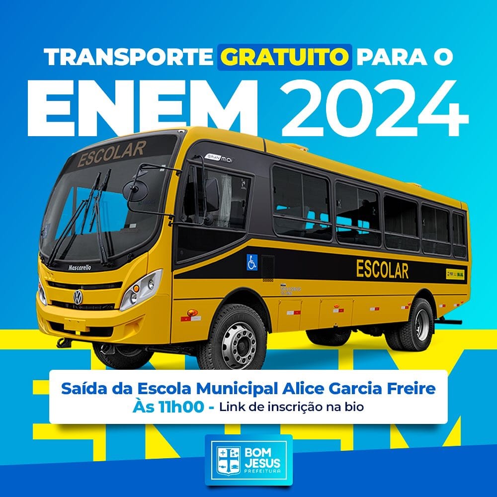 A Prefeitura Municipal de Bom Jesus/RN anunciou uma importante iniciativa para apoiar os estudantes locais inscritos no Exame Nacional do Ensino Médio (ENEM) 2024: a oferta de transporte gratuito para os dias de prova, 03 e 10 de novembro. Essa ação visa facilitar o acesso dos candidatos aos locais de prova em Macaíba e Natal, assegurando que todos tenham condições de se deslocar com segurança e pontualidade.