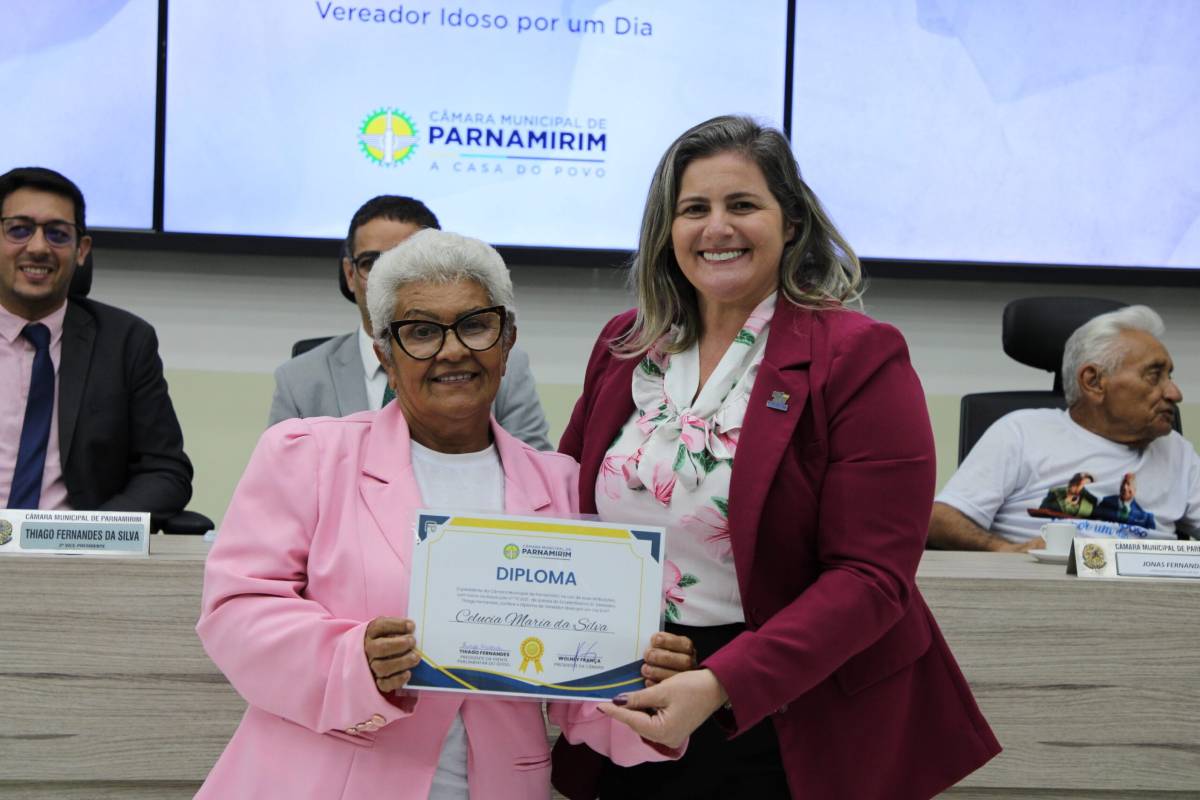 Na tarde desta terça-feira (19), a Câmara Municipal de Parnamirim realizou a Sessão Solene ‘Vereador Idoso por um Dia’, uma iniciativa do vereador Thiago Fernandes (PP). Durante o evento, a vereadora Fativan Alves (PSD) prestou uma homenagem especial a Celucia Maria da Silva, reconhecendo sua trajetória.