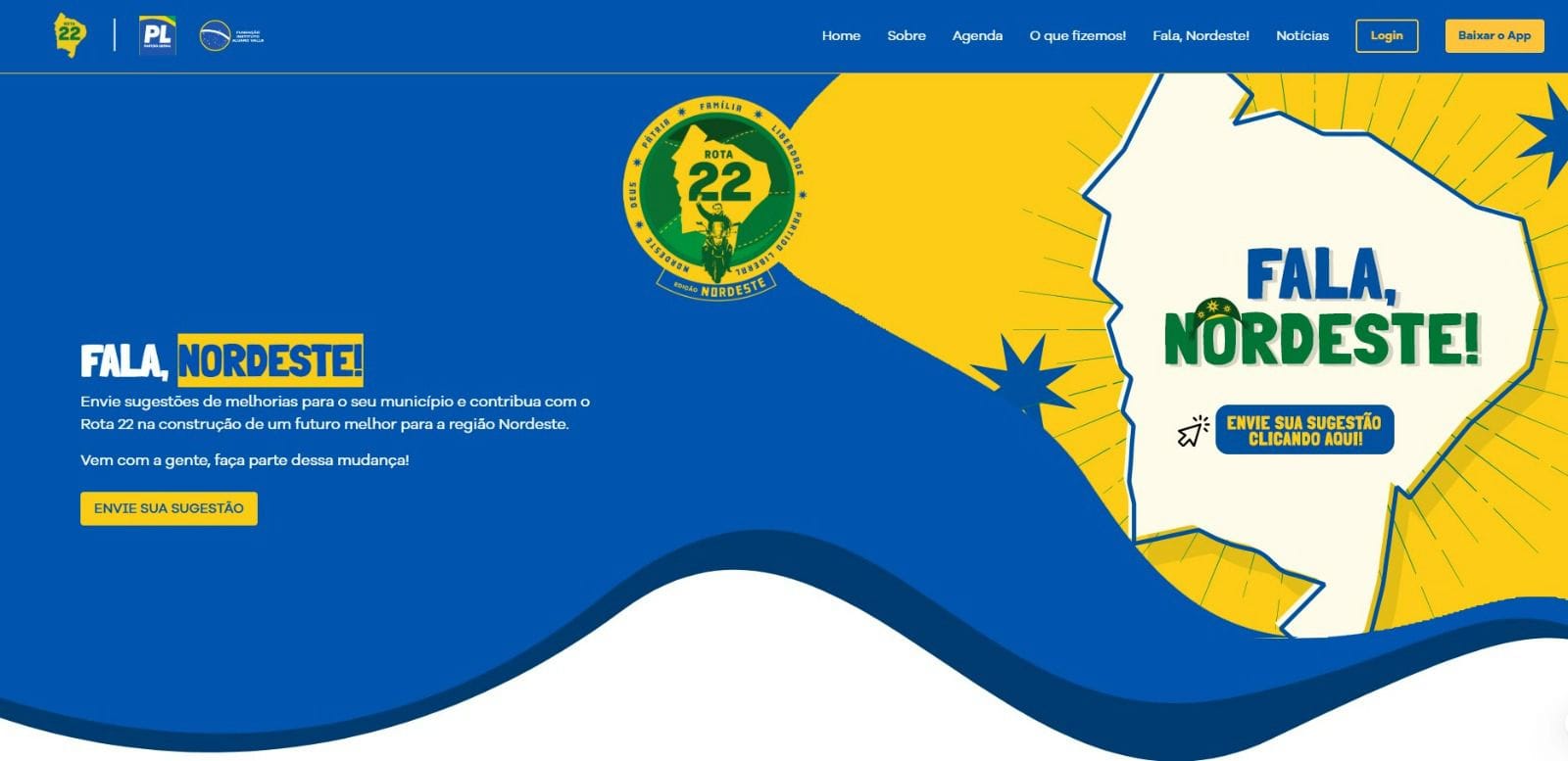 O Projeto Rota 22, uma iniciativa do PL em parceria com o Instituto Álvaro Valle, está tomando forma com o objetivo de renovar e fortalecer a relação entre a legenda e a população em todo o país. O primeiro passo da iniciativa está sendo no Rio Grande do Norte. Neste final de semana, inclusive, foi lançado o portal plrota22.com.br, com canais de contato para as sugestões e opiniões da população por meio do “Fala, Nordeste”, agenda de oficinas e seminários.