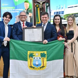 Durante a cerimônia, o artista se apresentou ao lado do filho e agradeceu a homenagem. “Eu já me sentia potiguar de coração, mas agora sou por lei”, disse.
