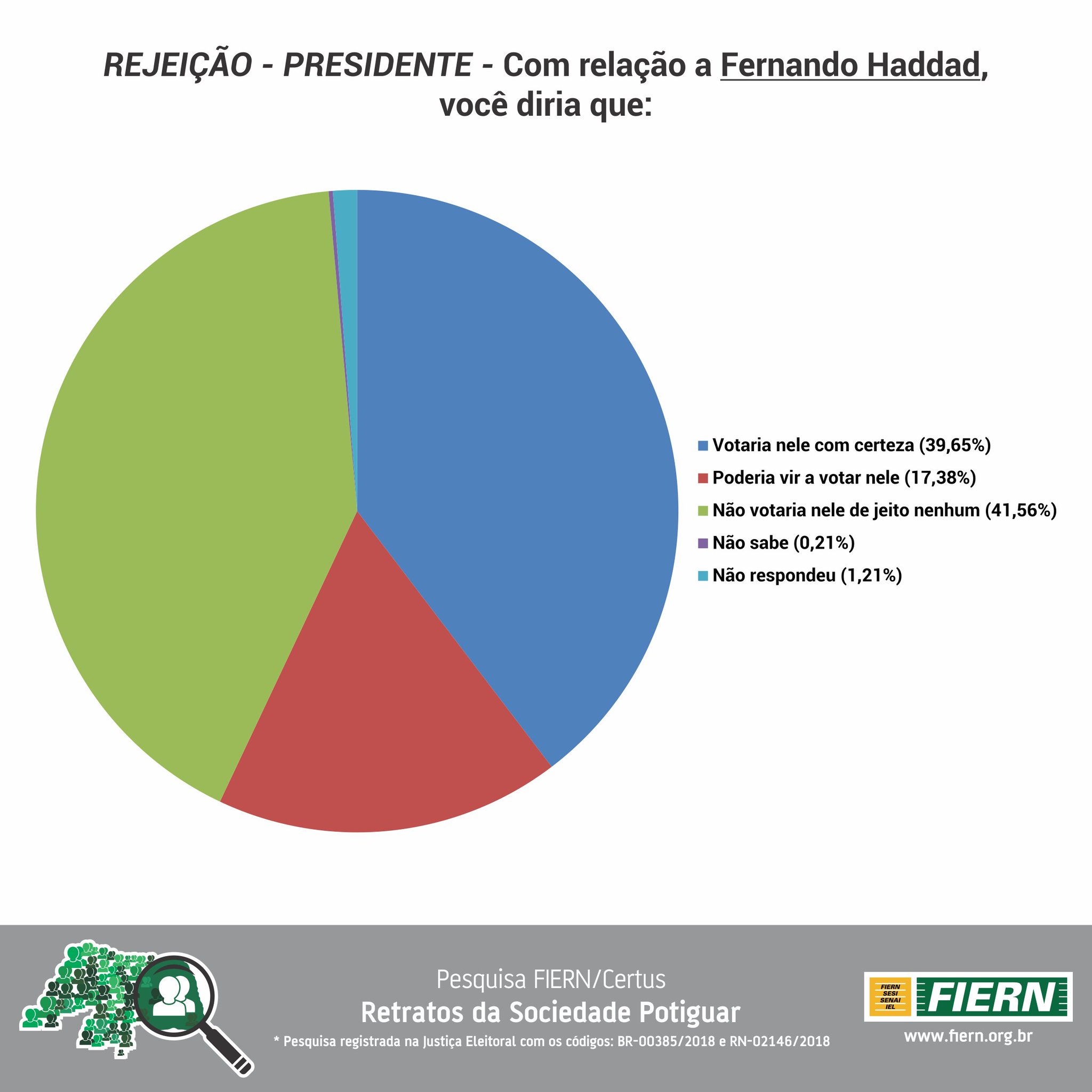 PESQUISA CERTUS/FIERN ESPONTÂNEA PRESIDENTE: Fernando Haddad tem 41,28% e Jair Bolsonaro 32,91%