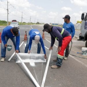 Um dos pontos mais importantes do projeto é a RN-313, que já teve seus 2,7 km de extensão totalmente pavimentados. Agora, as equipes trabalham na construção de calçadas e na pintura da sinalização horizontal, etapas essenciais para garantir a segurança de pedestres e motoristas.