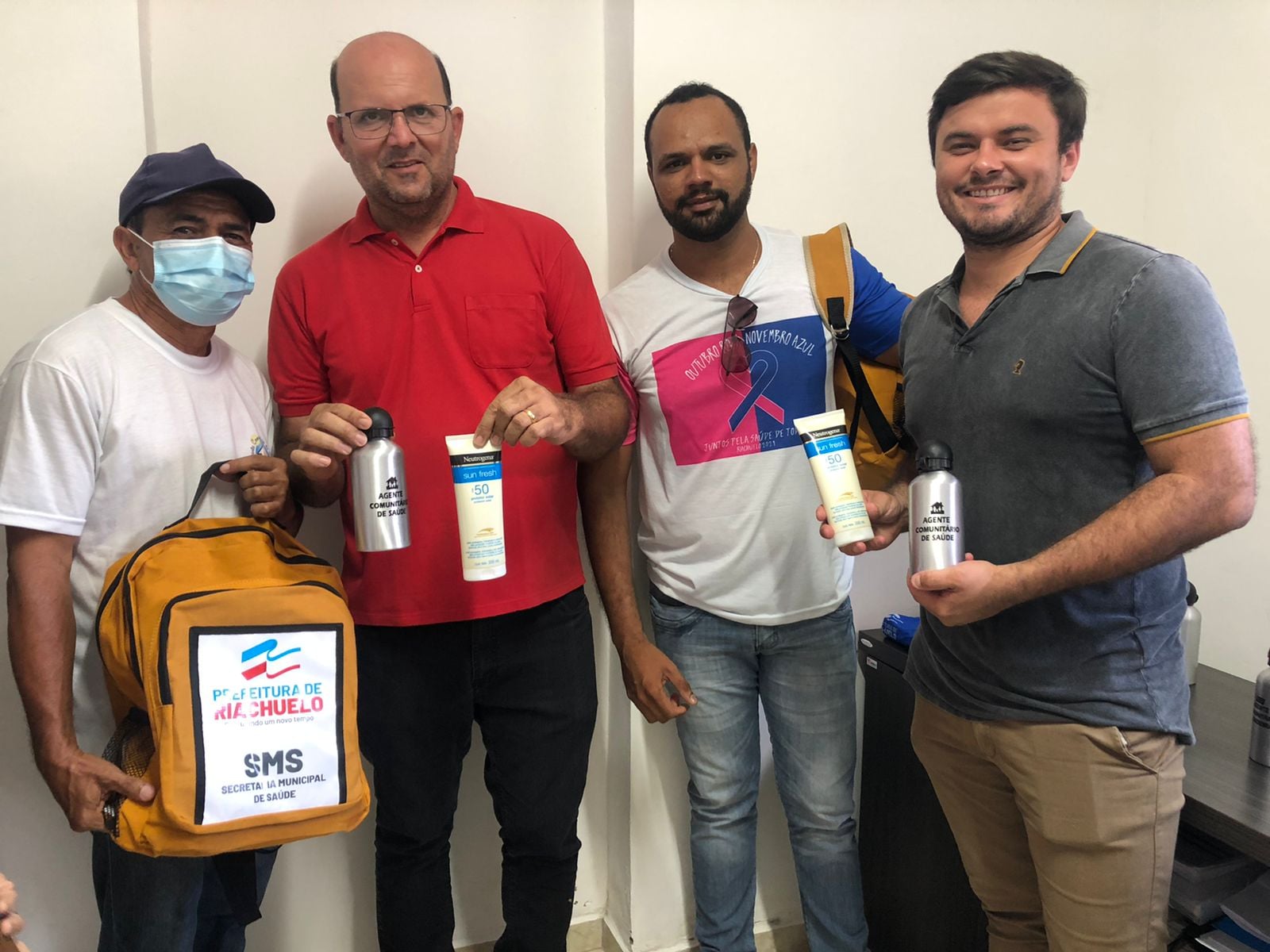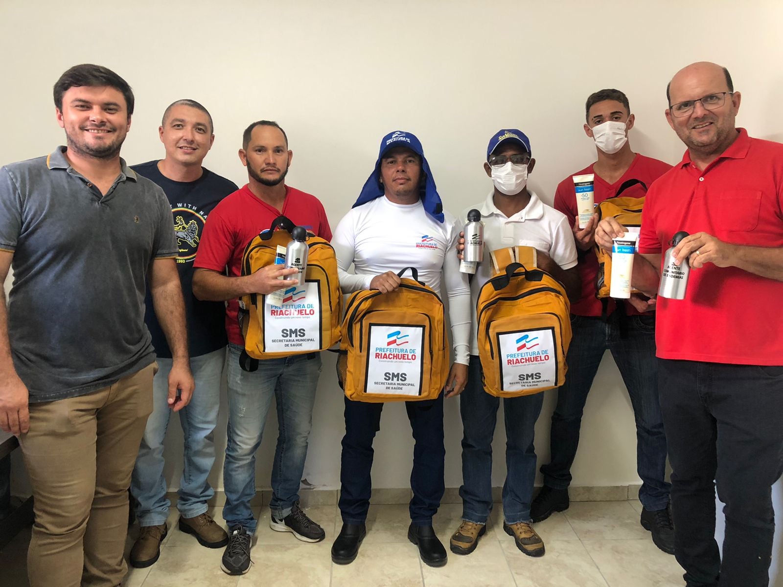 Foi entregue uniformes (camisa e boné com protetor de sol), mochila, garrafa térmica e protetor solar para os 18 Agentes de Saúde e os 4 Agentes de Endemias. Foi entregue também, kit contendo uniforme (camisa, boné) e equipamentos individuais de trabalho, como bolsa, protetor solar, e garrafa térmica. A iniciativa integra as ações da gestão de valorização dos profissionais.